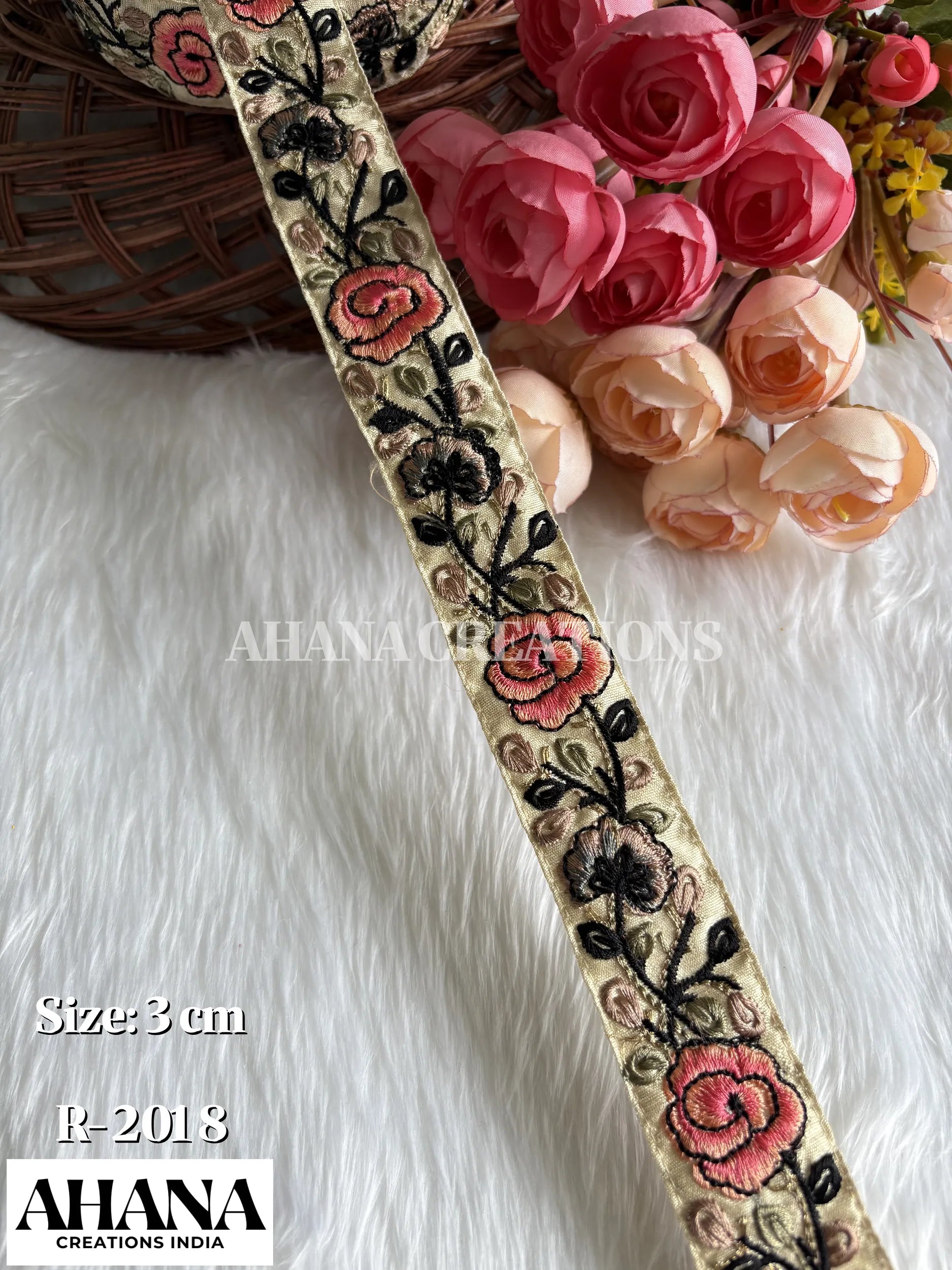Meet Sana Dupion Multicolor Lace - Beige base with Light Peach floral thread work – a fusion of tradition and quality, made from soft Beige Dupion with a design width of 3 cm. The lace showcases premium Light Peach floral thread work, perfect for festive wear.